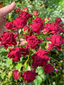 Роза Ред каскад Red Cascade - миниатюрная или плетистая роза, все зависит от целей выращивания - без опоры куст высотой до 45 см, с опорой до 2,0 метров. Цветочки мелкие, диаметром 2-3 см, темно-красного окраса, густомахровой структуры, чашевидной формы, с нежным и легким ароматом, собраны в кисти по 5-25 штук. Куст цветет непрерывно и обильно. Куст с шипами, устойчив к болезням и морозостойкий.