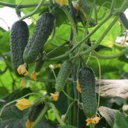 Плоди однорідні, помірно шиповані, з тоненькою шкіркою, насиченого зеленого кольору, мають відмінну консистенцію, генетично без гіркоти.