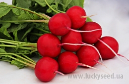 Редис Адель F1 (стандарт 2,2-2,4) (Adel F1) – опис: Сегментація – один з найбільш ранніх, високоврожайний гібрид редиски. Призначення – Редис холодостійка культура, і його можна вирощувати протягом усього року, так як у нього дуже короткий період вегетації, а саме з ранньої весни до пізньої осені – у плівкових укриттях і у відкритому ґрунті, у зимовий період – у плівкових і скляних теплицях. Ідеально підходить для реалізації, як пучкової продукції, так і на вагу. Характеристика плодів – Коренеплоди округлої форми, діаметром 3-4 см, щільні, вирівняні, не схильні до утворення пустот і розтріскування, не гірчать. Шкірка яскраво-червоного кольору, м'якоть біла, соковита. Середня маса коренеплоду – 30 г. У коренеплодах містяться: вітаміни групи A, B, C, E; клітковина; фтор; залізо; магній; фосфор та ін. Особливість рослини – Листова розетка відмінно захищає рослини від бур'янів. Рослина добре переносить кислий грунт, не потребує вапнування. Стійкість – Висока стійкість до стресів. Конкурентні переваги – Короткий вегетаційний період (20-25 днів після появи сходів). Без труднощів пристосовується до різних грунтово-кліматичних умов. Прекрасну врожайність демонструє на півдні України. Чудові смакові властивості продукту задовольнять гастрономічні потреби навіть самого вибіркового гурмана, а продаж коренеплодів гарантує підприємцям максимальний прибуток. Рекомендації – Рекомендована густота висіву – 200-240 шт./кв. м. Рекомендовані терміни посіву редису: весняний оборот – друга декада лютого, осінній оборот – третя декада серпня.